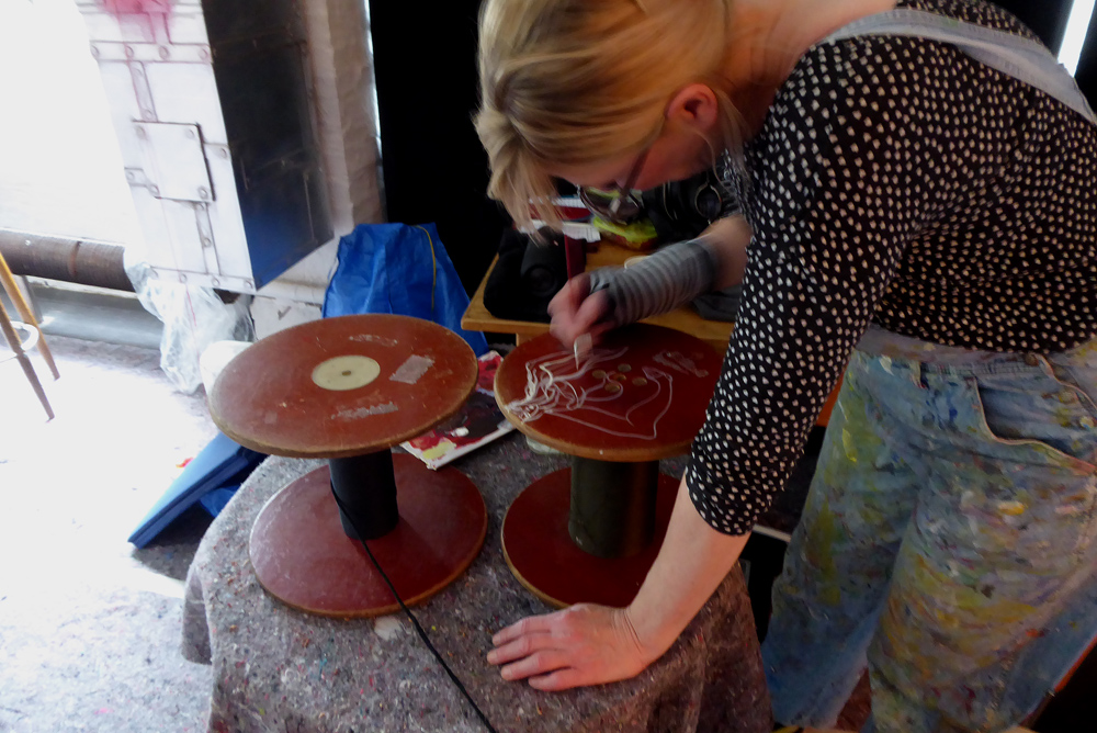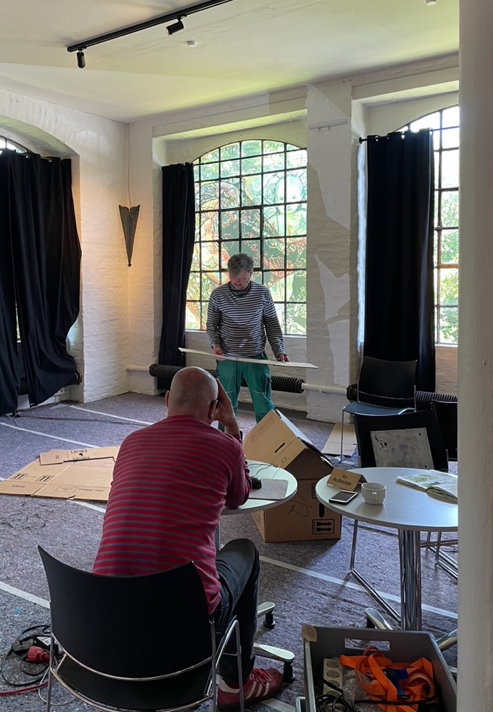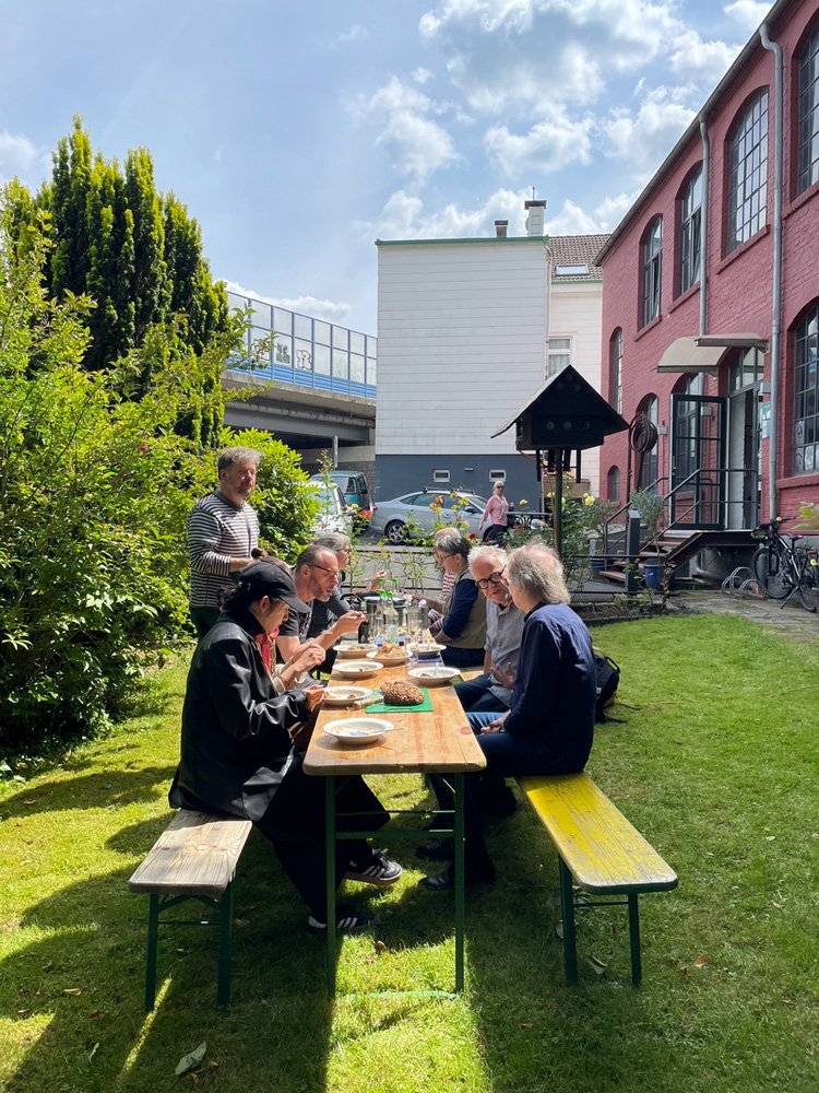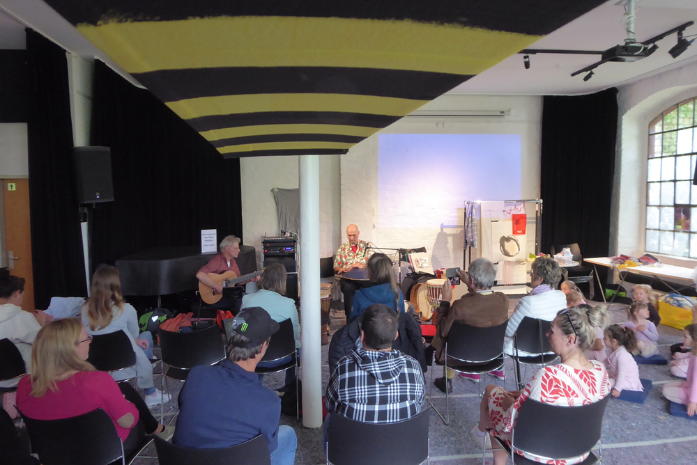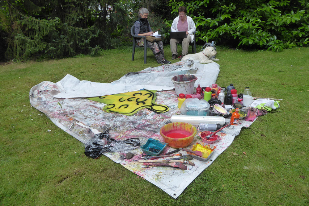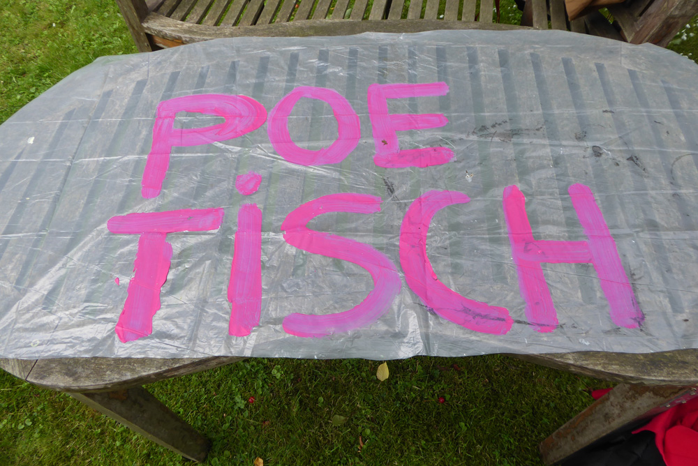 Die Besucherströme nehmen zu, das randloses Alle-machen-mit-Buch füllt sich zusehends, textile Arbeiten in Kleiderständern werden für Tanzmomente umrandet.