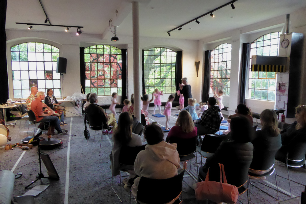 Am Nachmittag finden sich Martin Giessmann und Thomas Bräutigam (Tukano) zu randvergessener Musik ein und randomisieren den Ballettunterricht zweier Ballettklassen, die randlos zwischen Malerei und Tanz hin und her hüpfen.